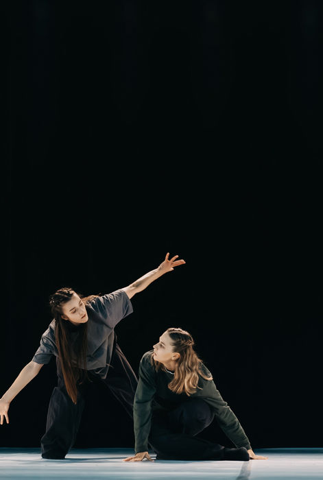 Here, the fluidity of contemporary dance intertwines with the dynamics of street dance. The bodies search for support in each other, then push away and distance themselves. Movement shifts from dialogue to conflict, from conflict to silence. Physical contact becomes an attempt to communicate without words, while withdrawal signals that distance may exist not between bodies, but within.
