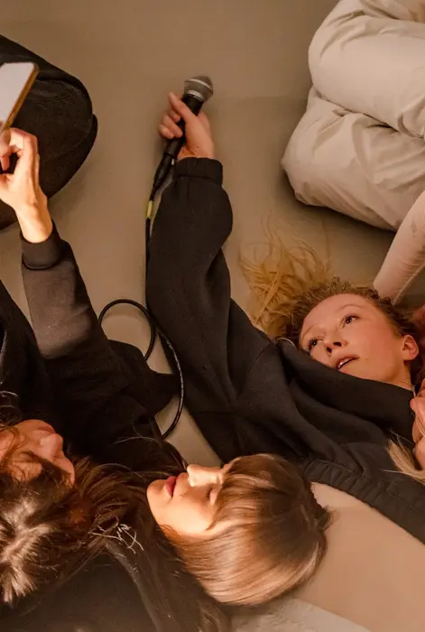 “Dance for a Cigarette and a Best Friend” analyses friendship. The bond between best friends, which is not based on blood ties or romantic partnerships, often becomes one of the longest lasting relationships in a person’s life. Friendship witnesses the breakdown or formation of other relationships, influences the formation of the other’s personality and inspires inner changes. We move away and come closer, we touch and go into distance. We are naked, vulnerable, sometimes jealous, but always stay in touch.